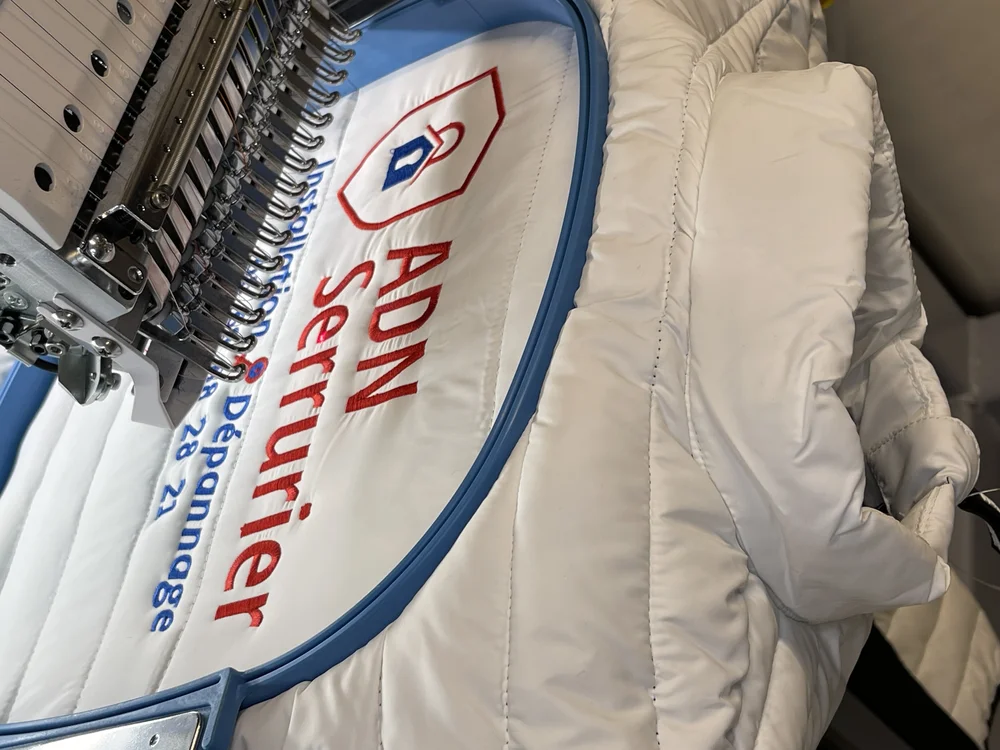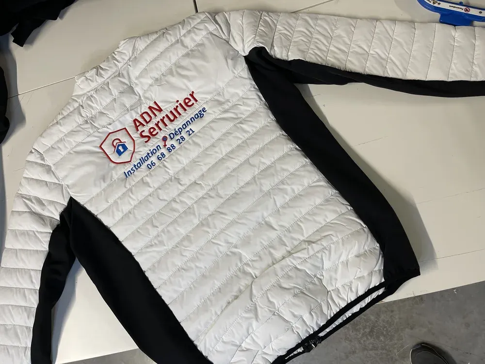Print France, votre expert en impression et broderie basé à Château Gaillard, est fier d'annoncer la réalisation d'une doudoune brodée pour l'entreprise ADN Serrurier située à Vienne. Ce projet a été entièrement conçu dans nos locaux à Château Gaillard, démontrant une fois de plus notre savoir-faire exceptionnel en matière de personnalisation textile.
