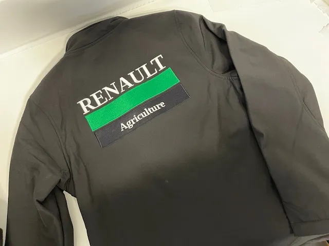 Print France, votre entreprise d'impression et de broderie située dans l'Ain, est fière d'annoncer sa dernière collaboration avec Renault Agriculture. Nous avons récemment achevé la réalisation de broderies sur des vestes Softshell, démontrant encore une fois notre expertise en matière de vêtements personnalisés.