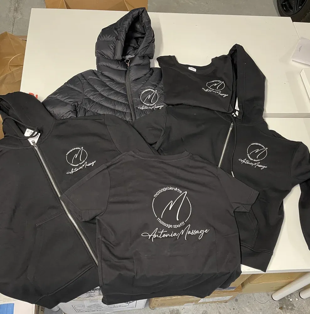 Print France, votre partenaire de confiance en impression et broderie à château gaillard, est fier de vous présenter sa dernière réalisation pour Antonia Massage Sportif. Cette collaboration met en lumière notre expertise en broderie, un art que nous maîtrisons pour offrir des solutions personnalisées et de haute qualité à nos clients.